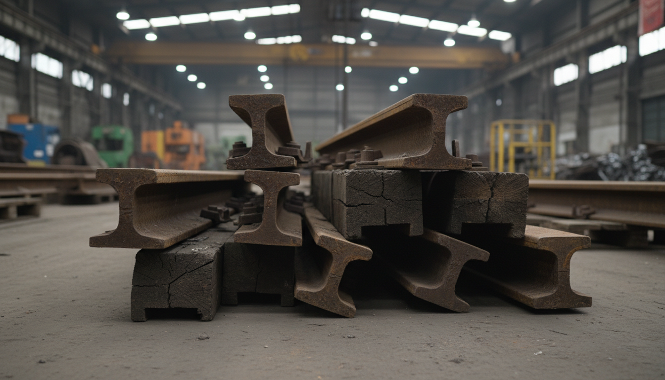 Ferrous scrap recovered from rail infrastructure, including rail and related components, prepared for controlled processing and mill use.