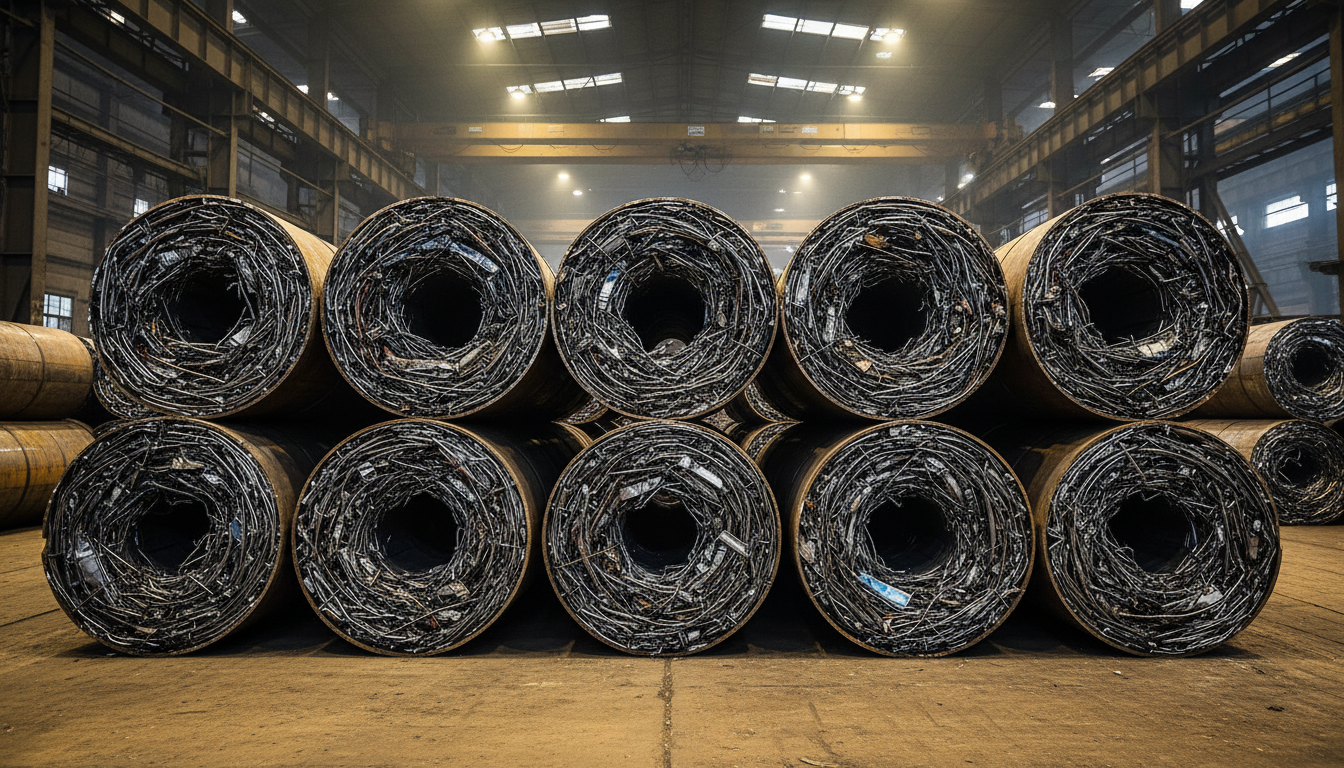 Densified ferrous scrap bundles designed for efficient furnace charging, improved handling, and predictable melting performance.